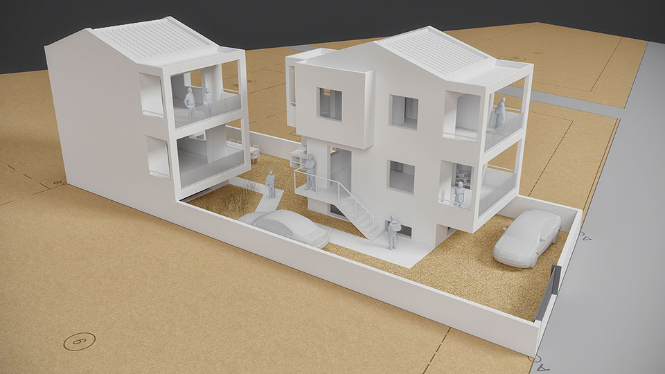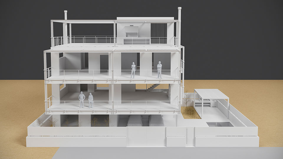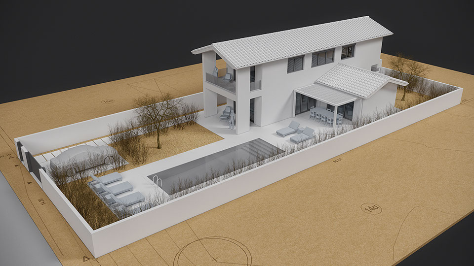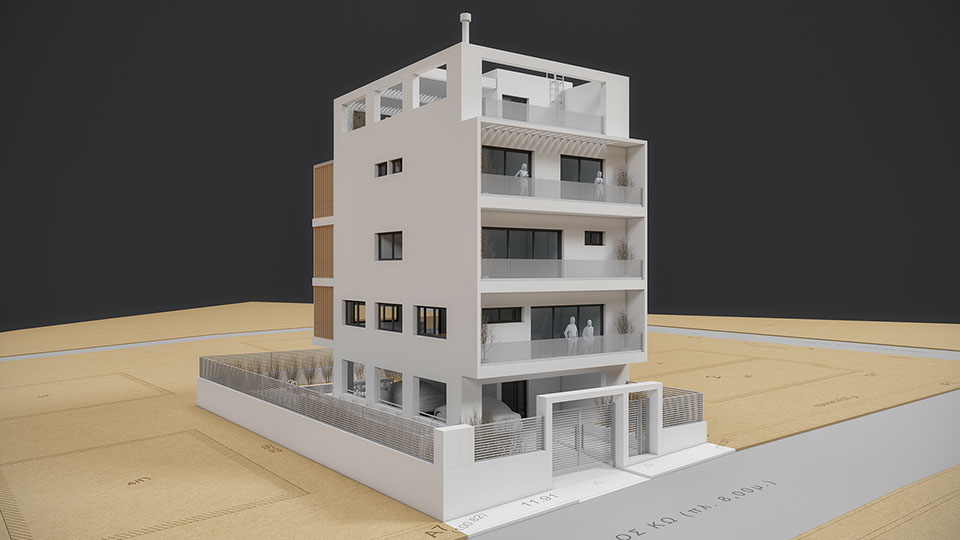 - κατόψεις, όψεις, τομές και 3D αρχιτεκτονικής μελέτης