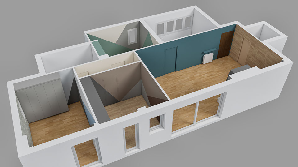 - new architectural floor plan (reorganisation of spaces)